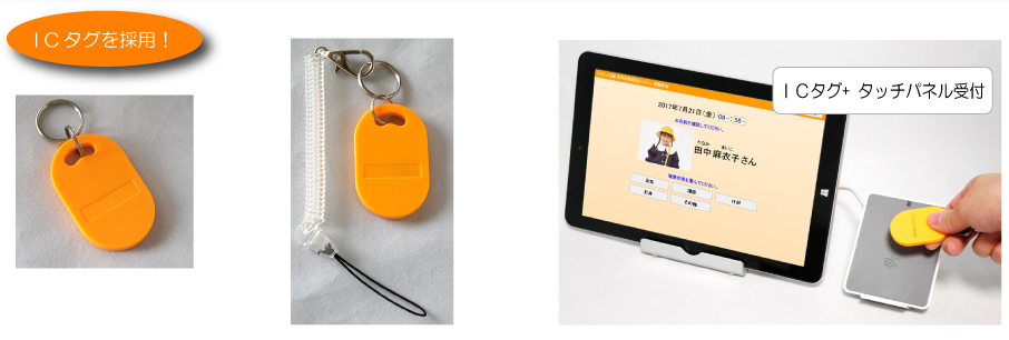 ICタグはカードタイプと比べ、耐久性にすぐれ、園児バッグ等に取付けることもでき、忘れ防止や受付時の取出し時間短縮などにつながります。